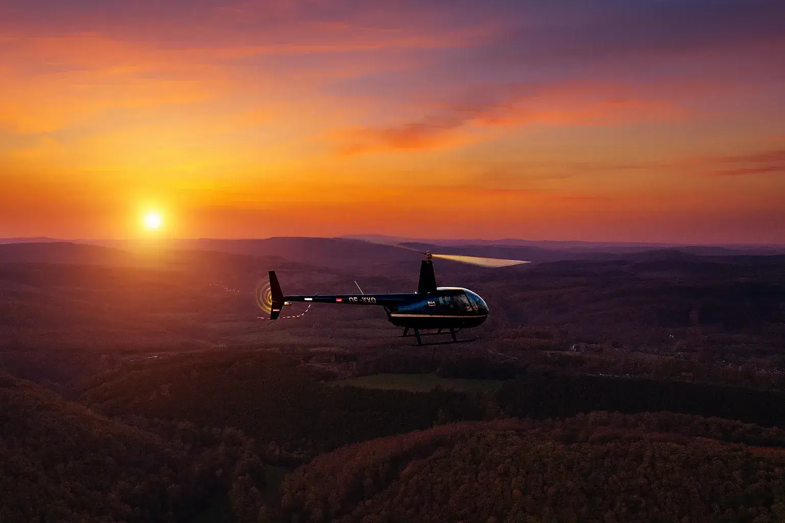 Romantik der besonderen Art: 60-minütiger Hubschrauber VIP-Flug zum Dinner am Jakobsberg, im Tal der Loreley, und zurück startet ab dem Siegerlandflughafen in Burbach.……